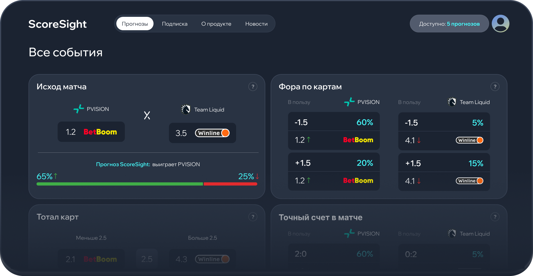 ScoreSight — платформа с AI-прогнозами на киберспортивные события